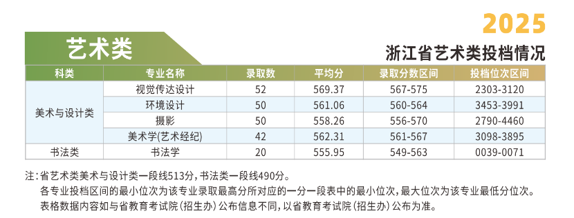 浙江财经大学2025年艺术类招生录取情况(浙江省)