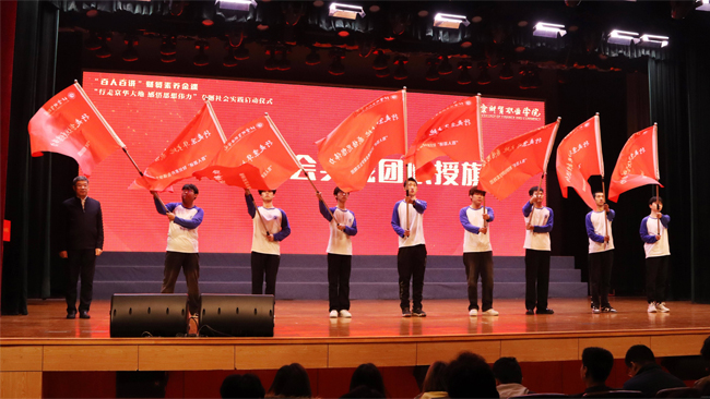 王红兵为专题社会实践团队授旗。81支团队将从北京财贸出发,深入基层一线,走进群众之中,了解首都发展情况,感受新时代伟大变革力量,用实际行动诠释新时代青年的责任与担当。王红兵寄语实践团成员要在“深学笃行”中坚定理想信念,提升思想境界;在“身体力行”中锤练过硬本领、磨砺增长才干;在“学思践悟”中感受时代发展、投身报国伟业,在新时代首都发展、中国式现代化建设中挺膺担当。