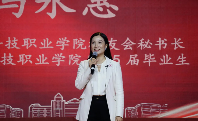 2005届毕业生冯永惠代表校友发言,表示作为2005届工商企业管理专业毕业生,同时也是两个孩子的母亲和一名女性创业者,在母校创办25周年之际,她深感荣幸能代表校友们献上祝福。她在发言中回顾了自己从四川大凉山怀揣梦想来到母校求学的历程,她通过自身的经历,鼓励师弟师妹们要不断追求成长和学习,为更多人和社会服务。同时,她也表达了对母校、老师和校领导的深深感激,认为他们的教导和鼓励是她能够取得今天成就的重要原因。最后,她祝愿母校下一个25年更加精彩,并祝福各位师生、校友、来宾们身体健康、福慧双全。