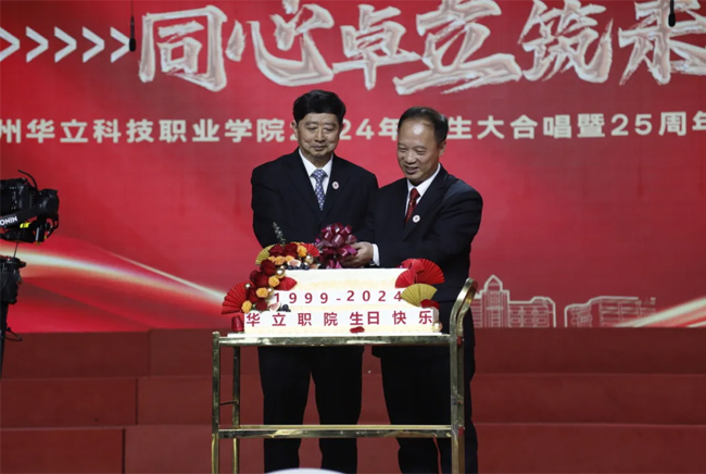 校歌发布仪式后,易健民校长、陈良声书记共同切下庆典蛋糕,象征学校走过25载辉煌岁月,展望未来更加美好的蓝图。祝贺华立职院25岁生日快乐!