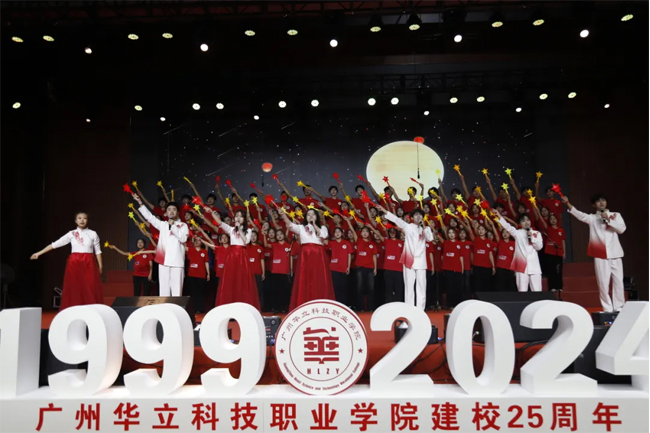 随后师生共同唱响充满力量与希望的校歌——《华立之光》。二十五载芳华,我们风雨同舟;二十五载辉煌,我们携手共创。